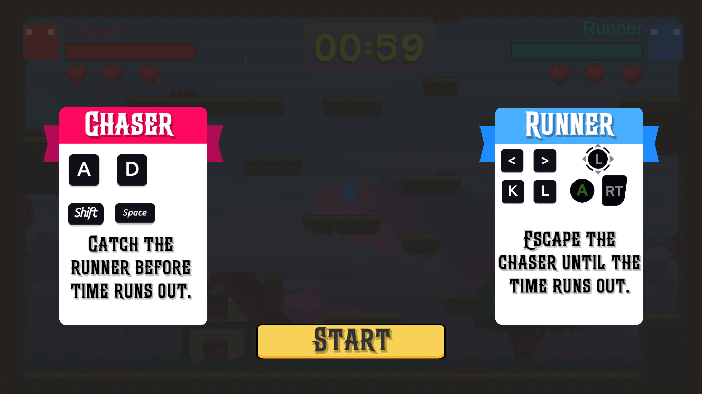 Chaser & Runner is a Local Coop 2 player game where you can play with your friends!